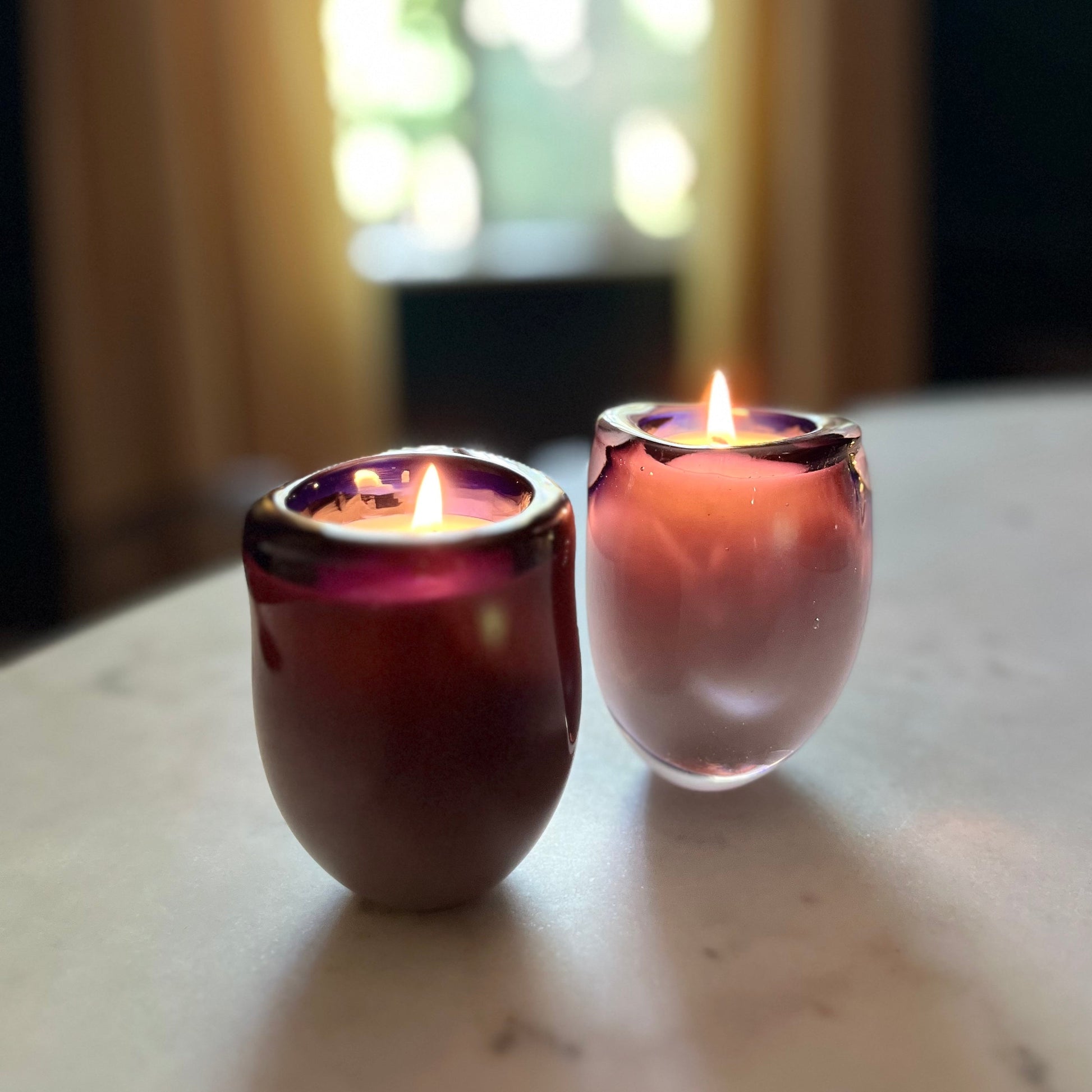 Royal purple handcrafted blown glass votive designed with intention, artistry and serving great purpose. Each PURPLE REIGN votive sale benefits tree preservation and planting new trees. Repurpose into beautiful bud vases all year round.