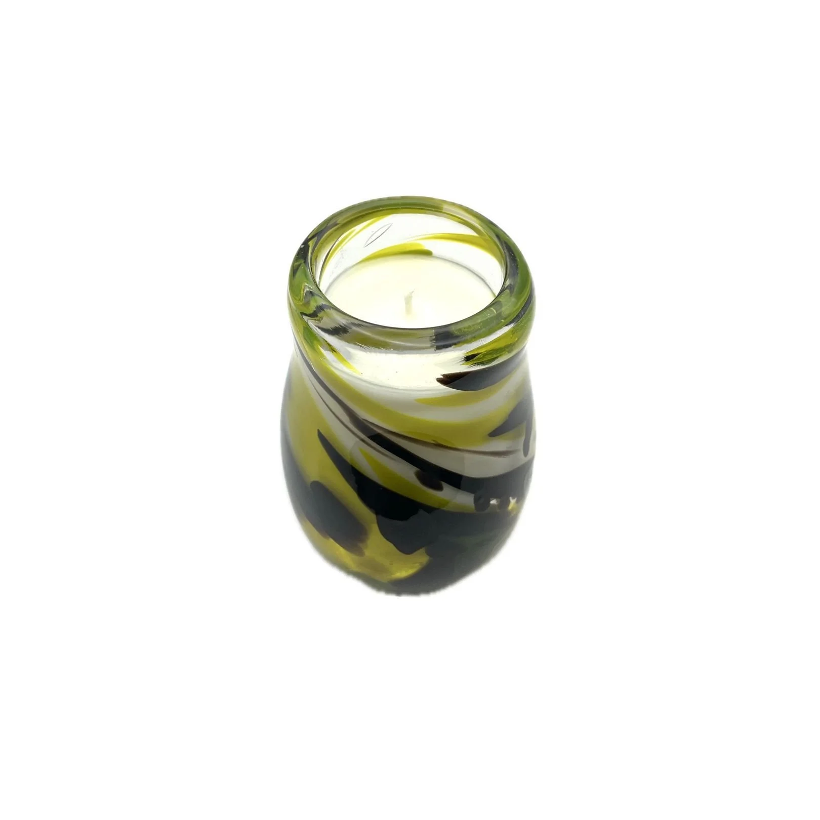 When your LIGHT REIGN candle has fully retired, simply hand wash increasing the temperature to hot water - do not shock glass from cold to hot - it will break. Soften and get remaining wax and metal wick mount out. Do not pour down the drain, discard into a trash bin. Do not microwave or put into dishwasher. Wash with hot water and soap and finish with glass cleaner to get it ready to be used again.