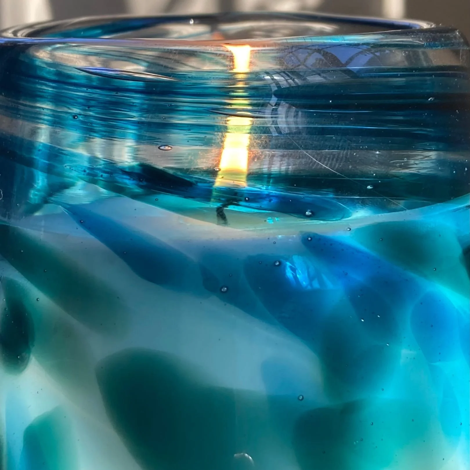 We use 100% cotton braided wicks. To maintain the luminosity of your piece, we recommend trimming the wick “bloom” when cooled after or before each use.