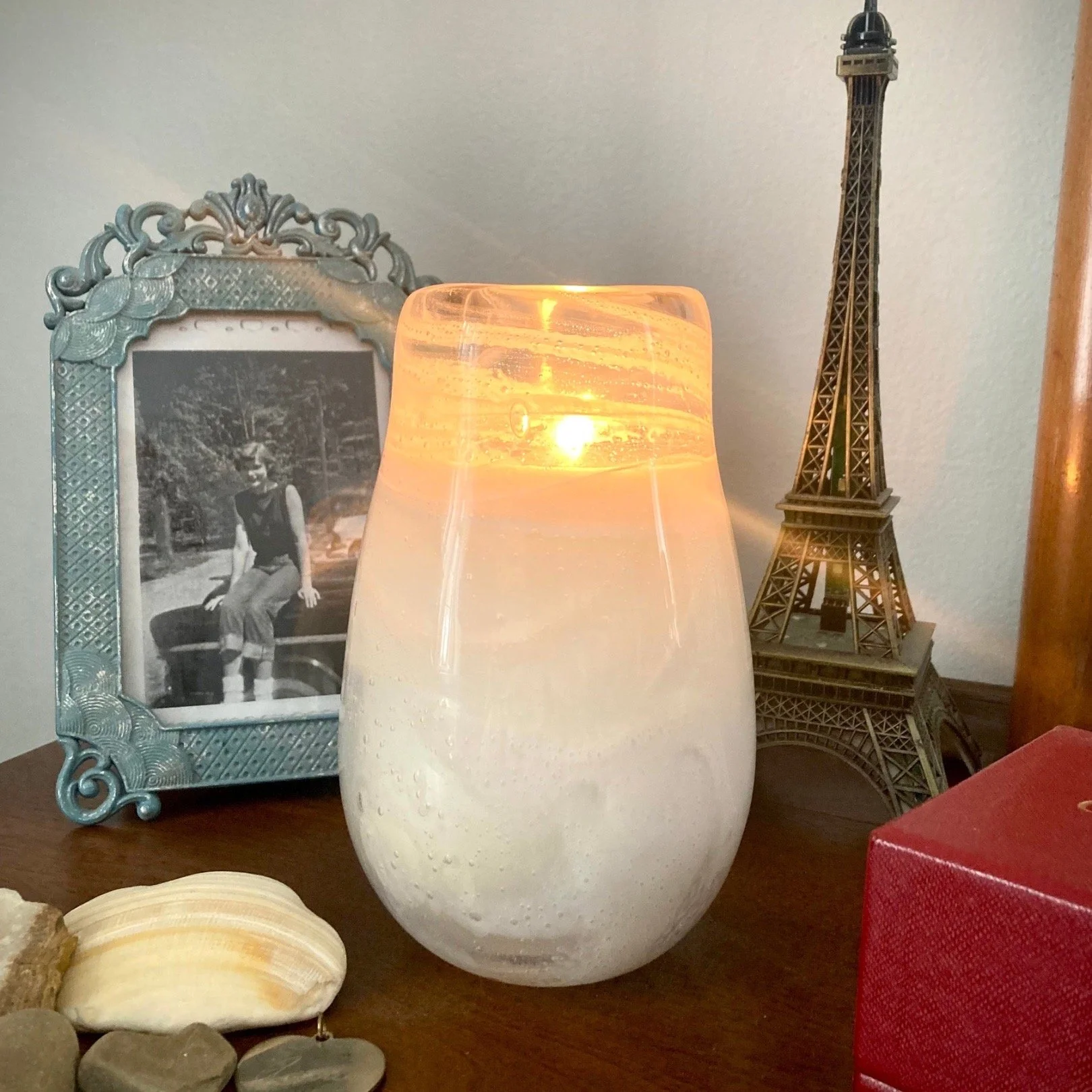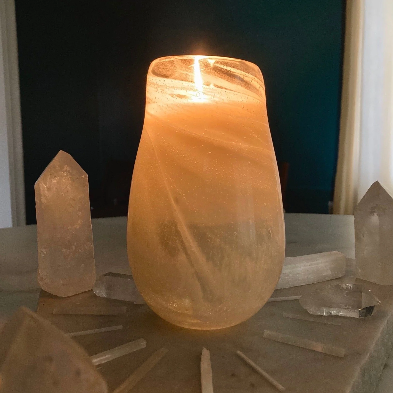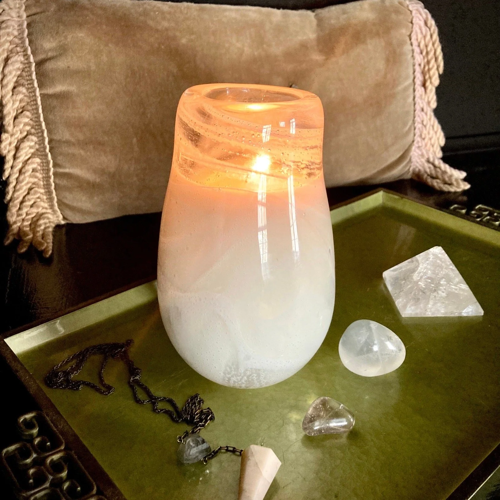 Each blown glass candle is a one-of-a-kind work of art. Subtle variations in color, size, and shape celebrate the handcrafted essence of LIGHT REIGN. Embrace the individuality and artistry of each creation, where beauty meets craftsmanship.